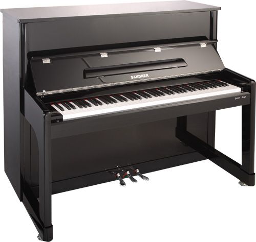 ฝาครอบและแผ่นครอบของเปียโนอะคูสติกจะทำมาจากไม้ ในขณะที่กระดานเสียง (soundboard) จะถูกทำจากเหล็กกล้า และขึงด้วยสายโลหะ ลิ่มนิ้วของเปียโนมาตรฐานมีอยู่ทั้งหมด 88 คีย์ (คีย์ขาว 52, คีย์ดำ 36) ช่วงคีย์ปกติจะมีสายโลหะอยู่ 3 เส้นในหนึ่งคีย์ และคีย์เบสจะมีสายโลหะเส้นใหญ่อยู่ 1–2 เส้นในหนึ่งคีย์ เมื่อกดคีย์ จะเกิดเป็นเสียงโน้ตดนตรีที่มีความถี่การสั่นพ้องแตกต่างกันออกไป[2] และเมื่อปล่อยคีย์ เสียงก็จะถูกตัด หากต้องการให้เสียงกังวานและลากยาวก็สามารถทำให้ โดยการเหยียบเพดัลขวา (คันเหยียบ) ที่อยู่บริเวณด้านล่างของเปียโนค้างไว้